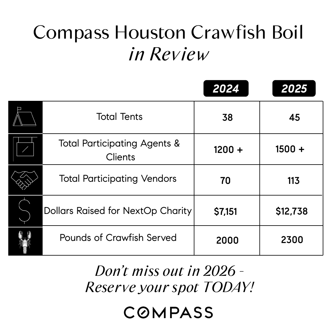 Access to all attendees, including Compass Houston Agents and their clients (over 1500 in attendance in 2025)